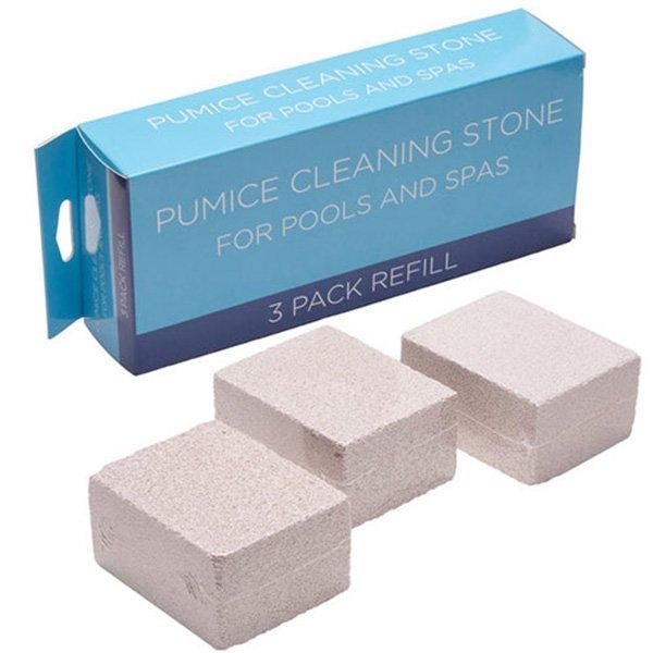 A pumice stone is a natural volcanic stone used on ceramic tile, concrete or plaster surfaces to rub away both main types of pool scale. It’s effective and fun to use (it floats!). However, it wears thin quickly and can make a mess. When using a pumice stone, make sure to keep both the stone and the surface you are cleaning wet at all times to prevent scratching.