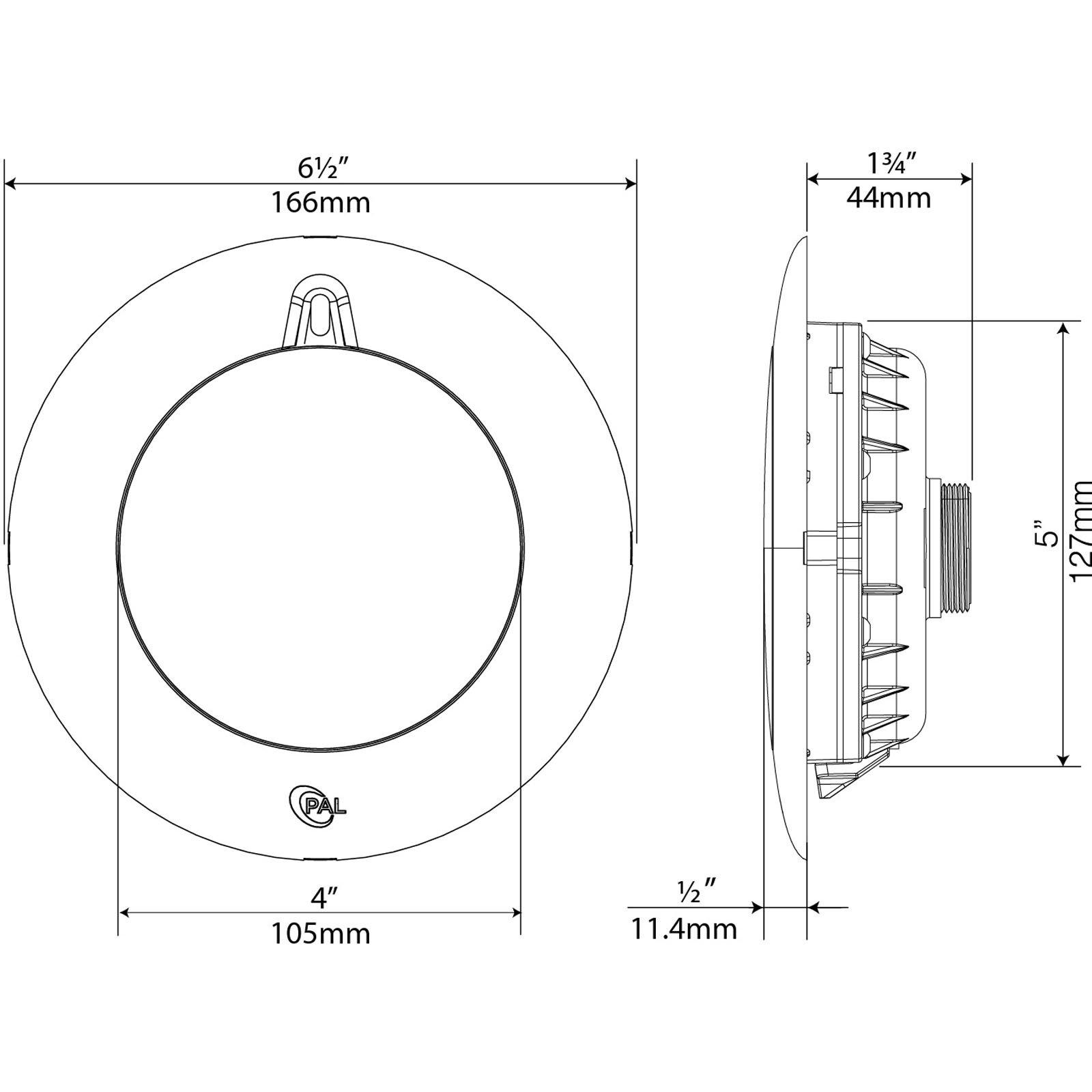 - Light Dimensions: 6-1/2" OD, 1/2" Lens Thickness, 2-1/4" Total Thickness