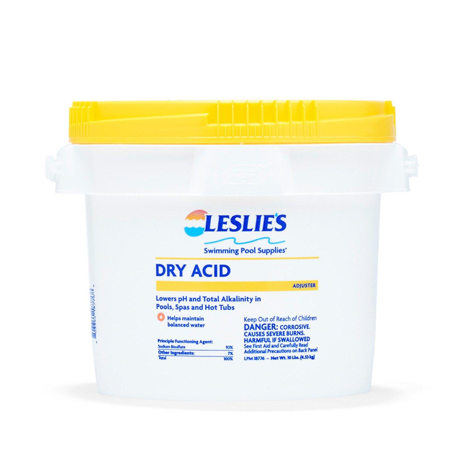 The best, mess-free, option to balance your water chemistry is with Leslie's Dry Acid. Dry Acid is a solid, granular form of acid making it easier to measure and add into your pool, spa, or hot tub's water. Just 2 lbs of our Dry Acid getting added to your water can change by 10 ppm.