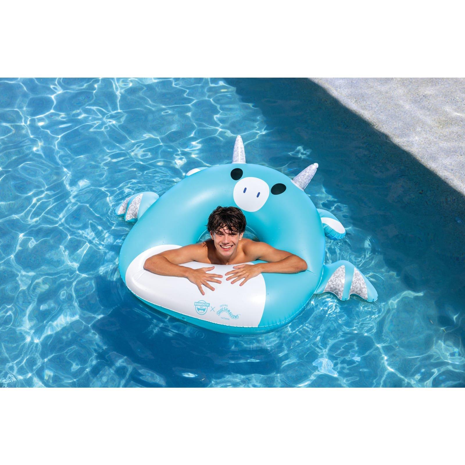 Kids will love slaying the roaring waves atop of the BigMouth X Squishmallows Tatiana the Dragon Pool Float!